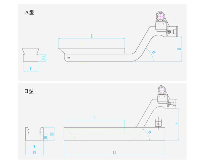ZDGB系列刮板排屑裝置由殼體、減速機(jī)、驅(qū)動(dòng)鏈條、傳動(dòng)鏈條及刮板等部分組成。該裝置是利用特制的滾輪鏈條傳動(dòng),用刮屑板將切屑沿排屑器底部刮送到指定位置。該裝置可提供充足的選用范圍,刮屑板的高度、分布間距可隨機(jī)設(shè)計(jì);通過(guò)輸送速度、有效輸送寬度的變化組合,可以調(diào)整控制機(jī)器的實(shí)際輸送量。