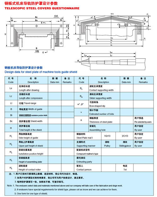 在世界上有許多的公司生產(chǎn)或銷售鋼質(zhì)伸縮保護(hù)外罩就體積和質(zhì)量而言我們公司已經(jīng)達(dá)到了生產(chǎn)的水平由于我們對(duì)機(jī)械設(shè)備方面進(jìn)行巨大投資和人員培訓(xùn)以及具有離度稱職的工程師力量.使我們完全可以應(yīng)對(duì)機(jī)床研制發(fā)展中的最新的挑戰(zhàn):高速線性電機(jī)的使用和軸向速度的增加。